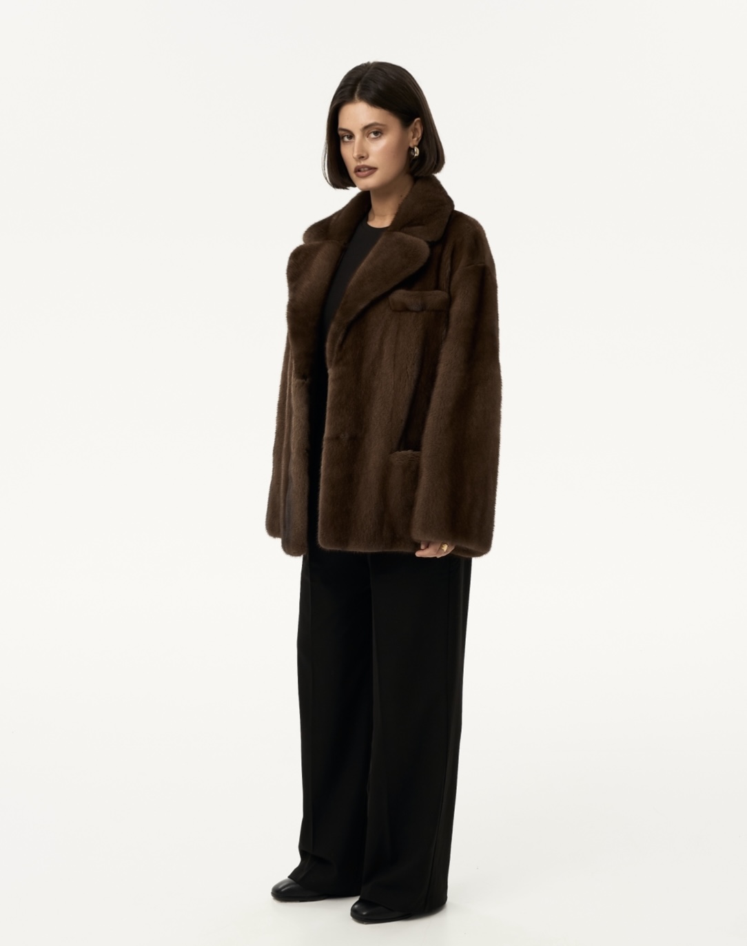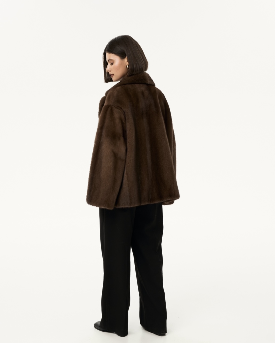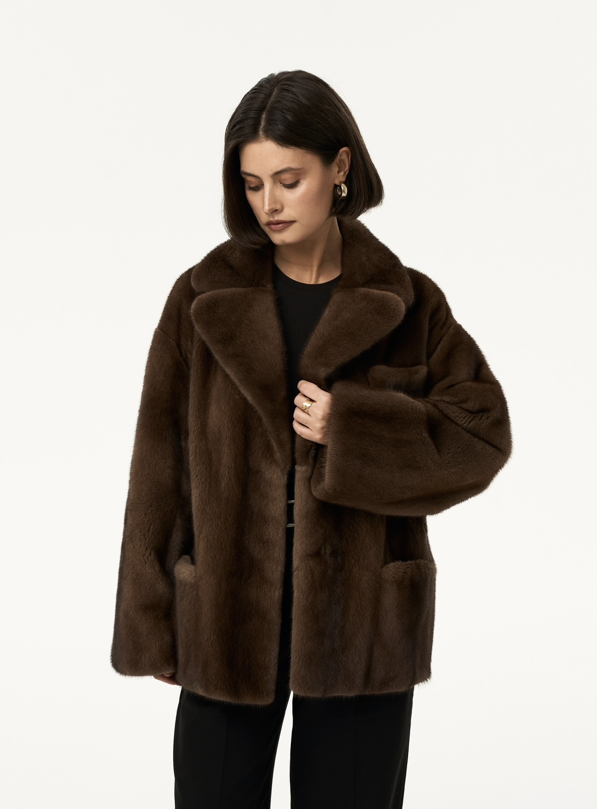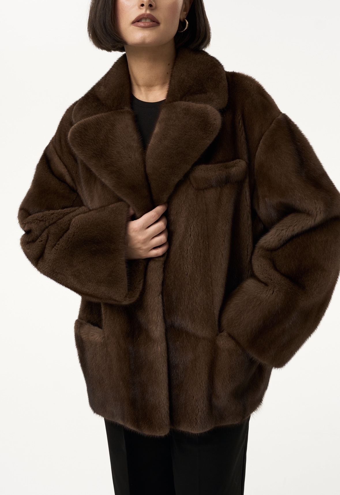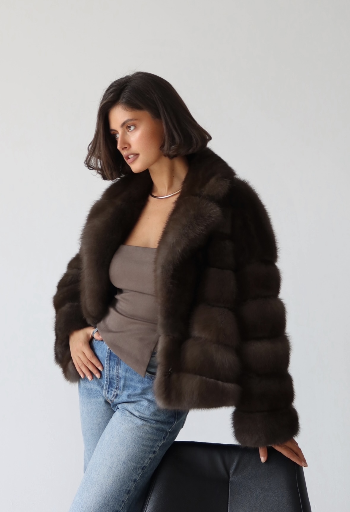 Жакет из меха аукционной отборной норки в цвете Dark Brown с английским воротником