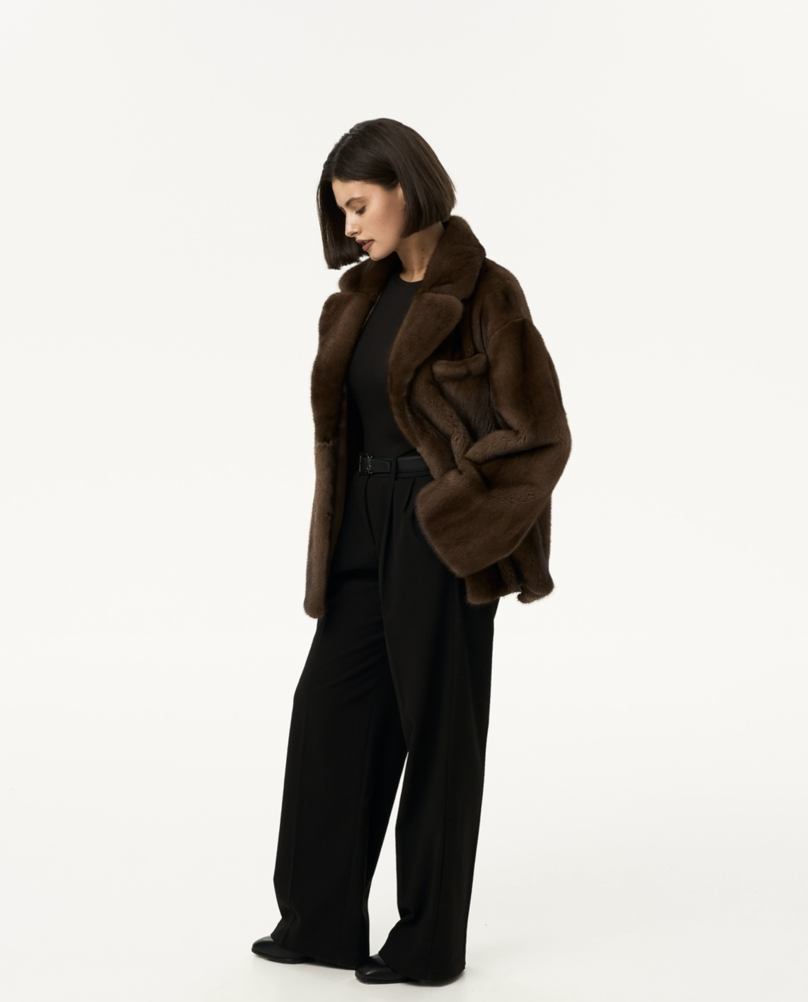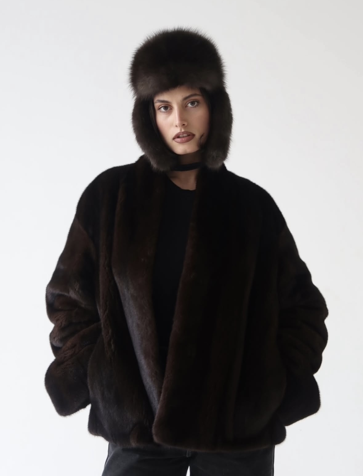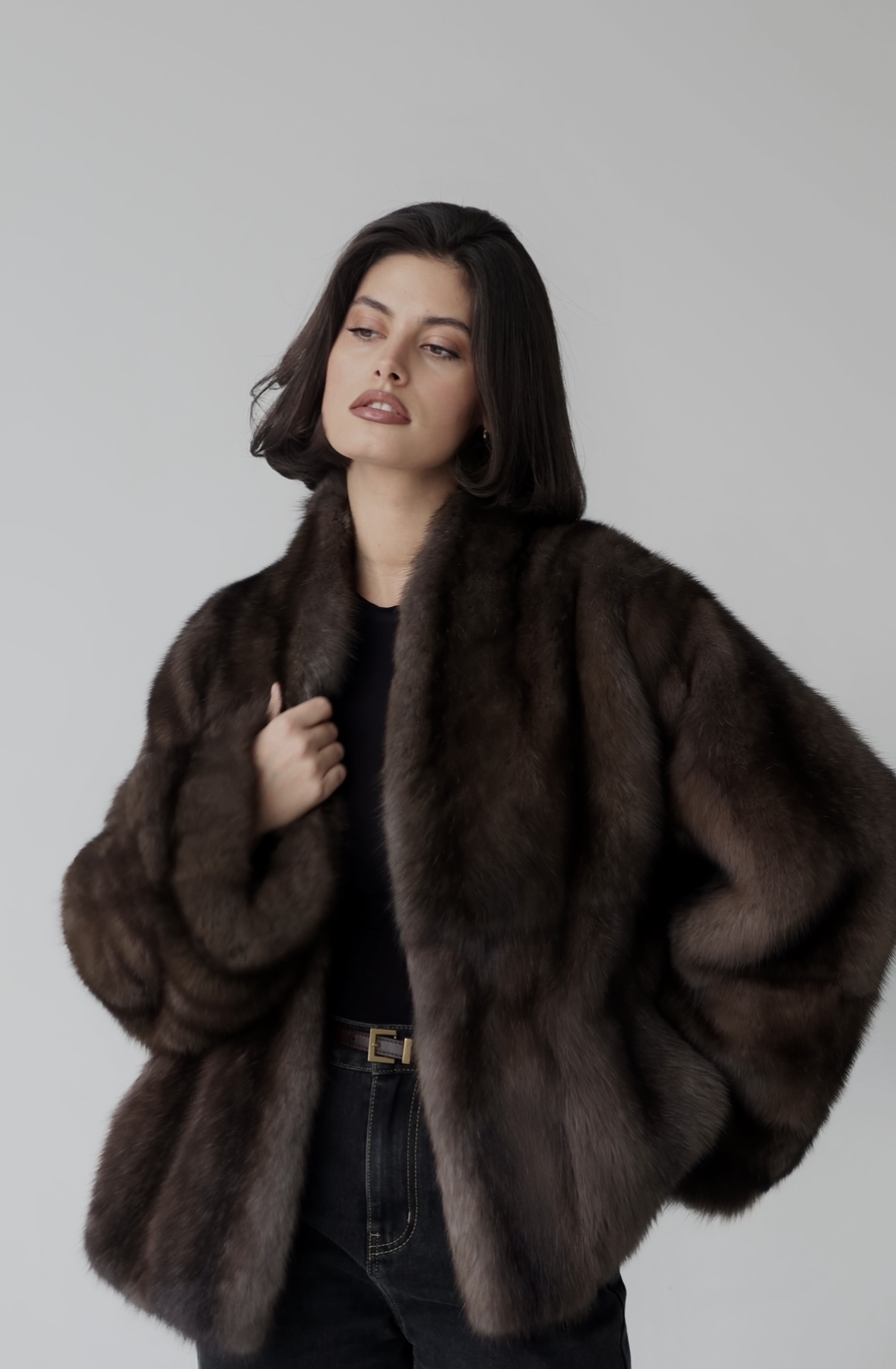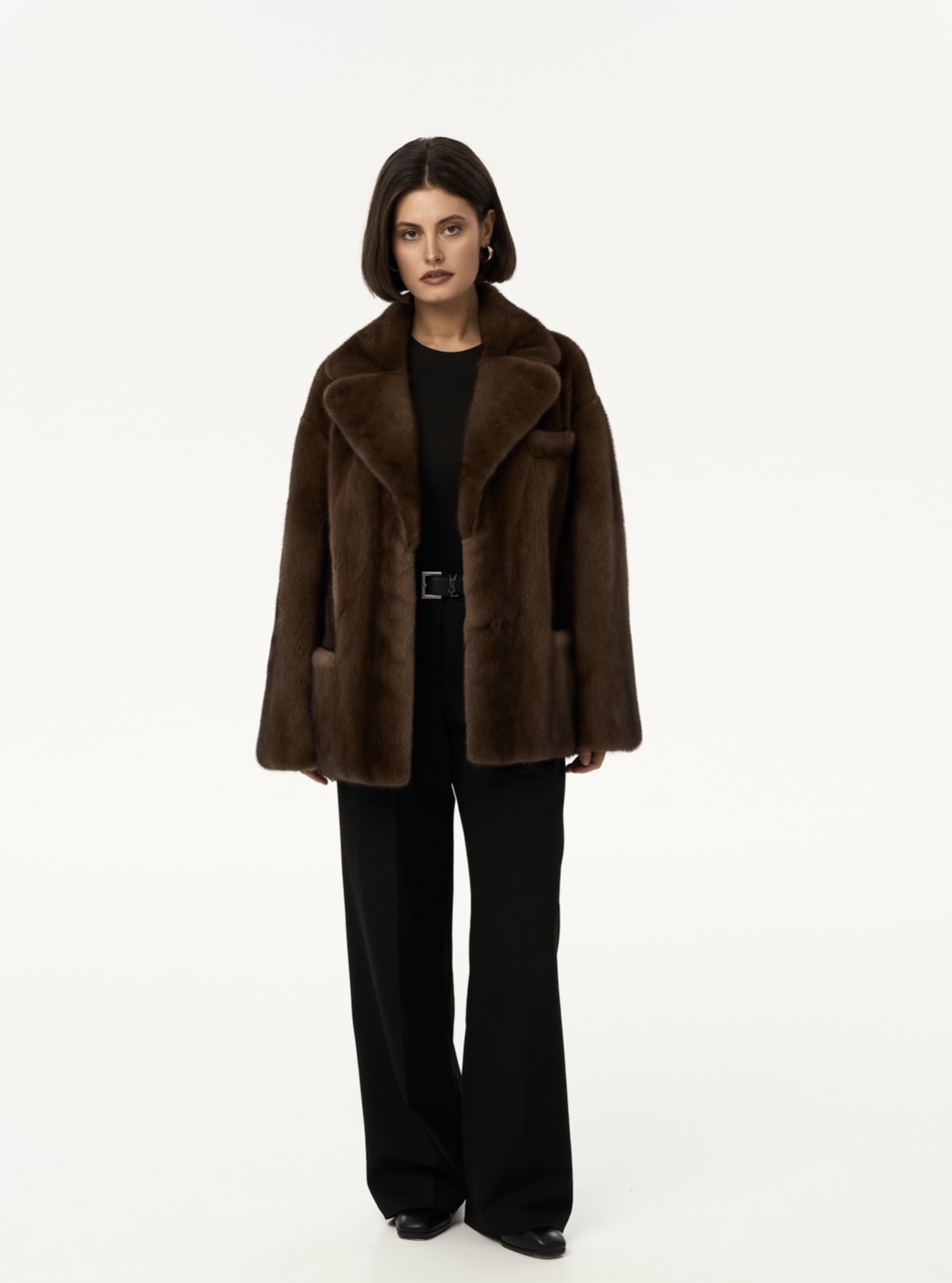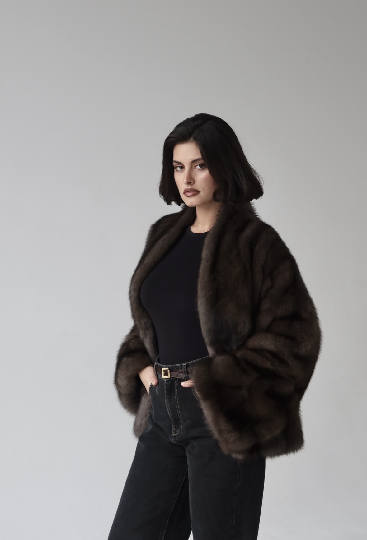Жакет из меха аукционной отборной норки в цвете Dark Brown с английским воротником