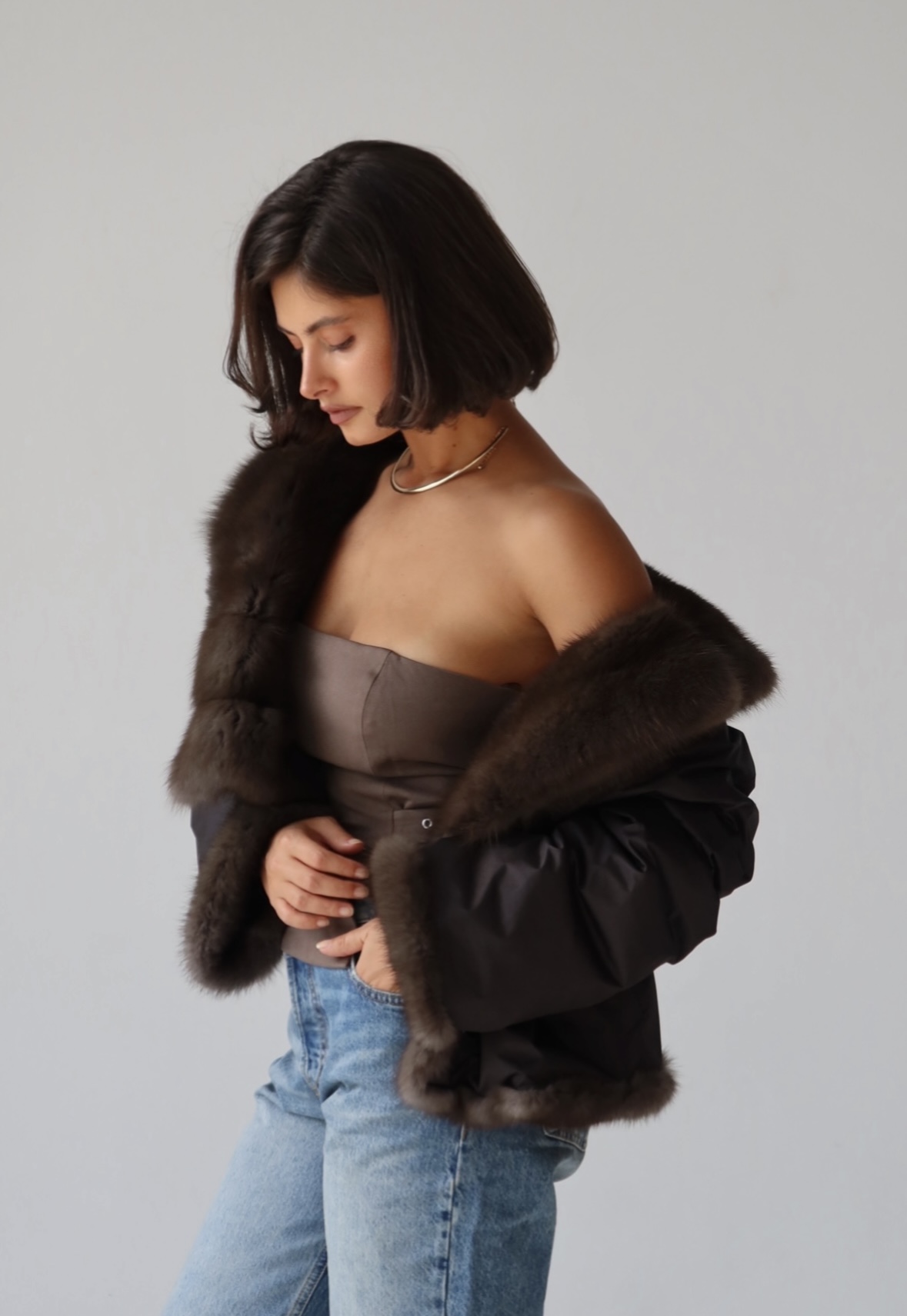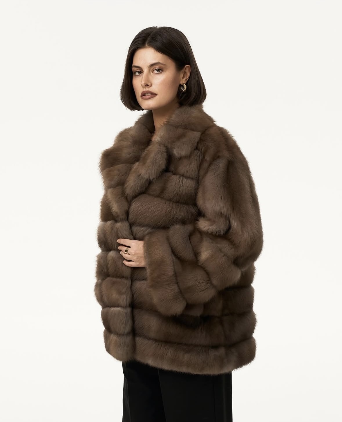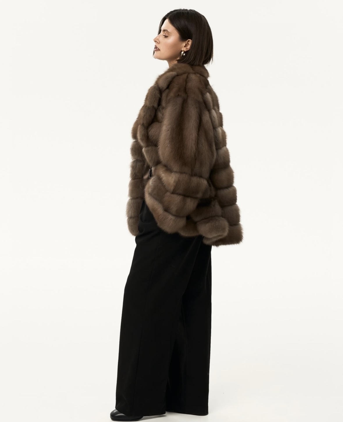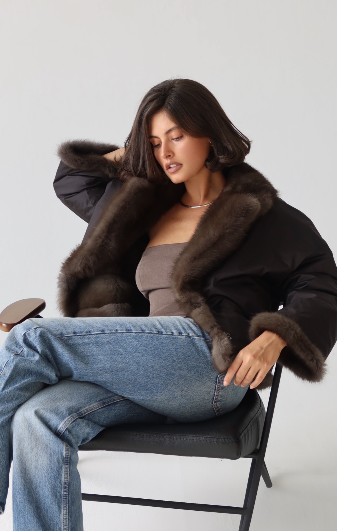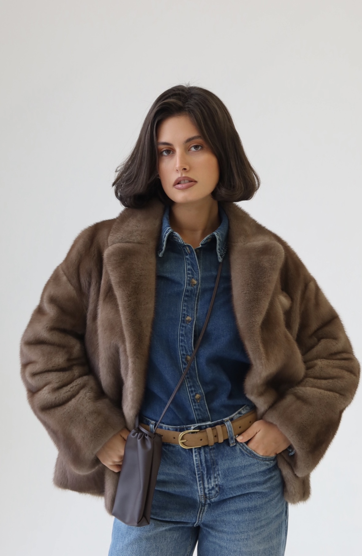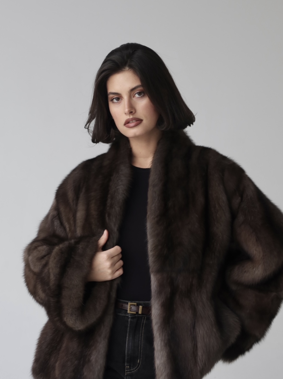 Жакет из меха аукционной отборной норки в цвете Dark Brown с английским воротником