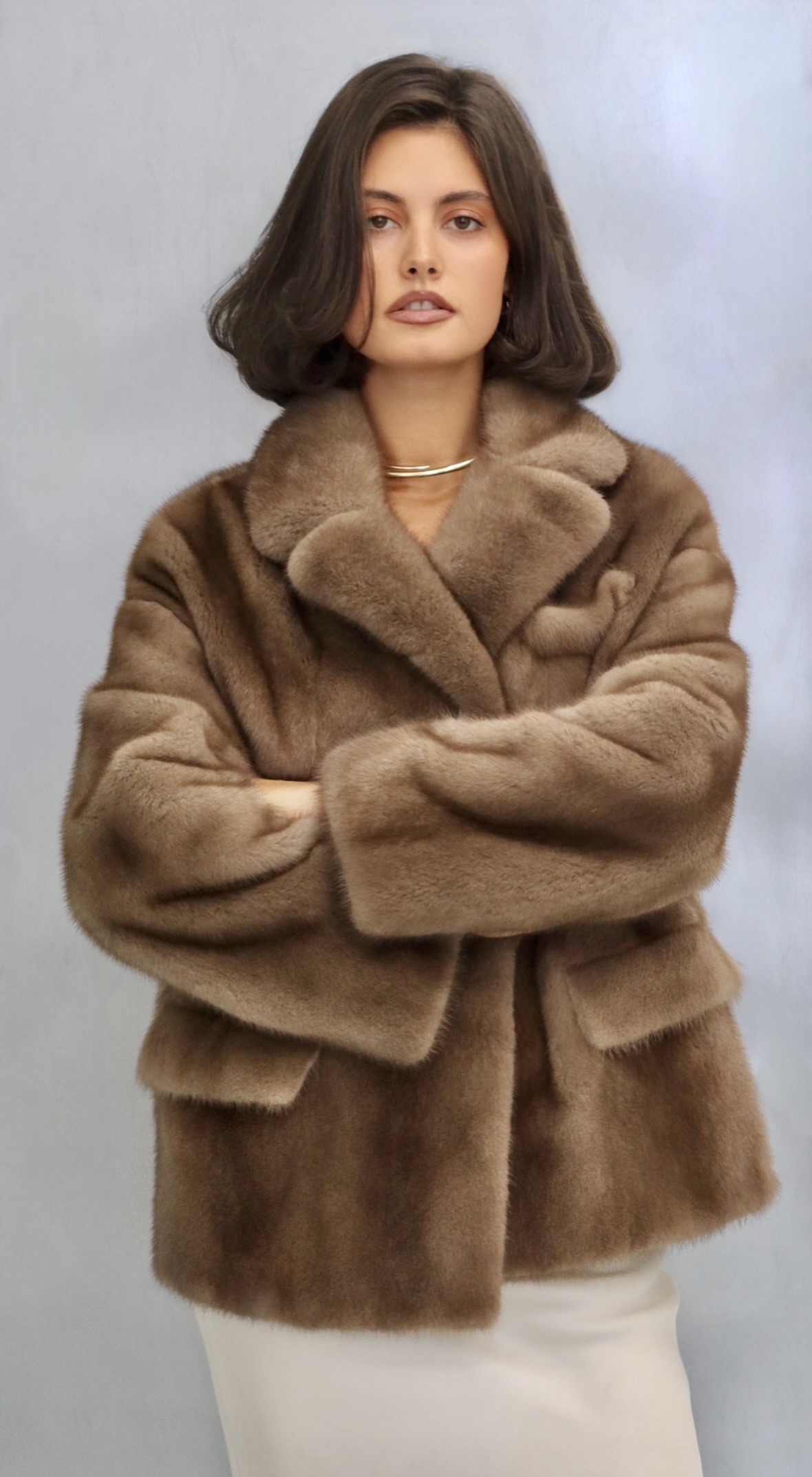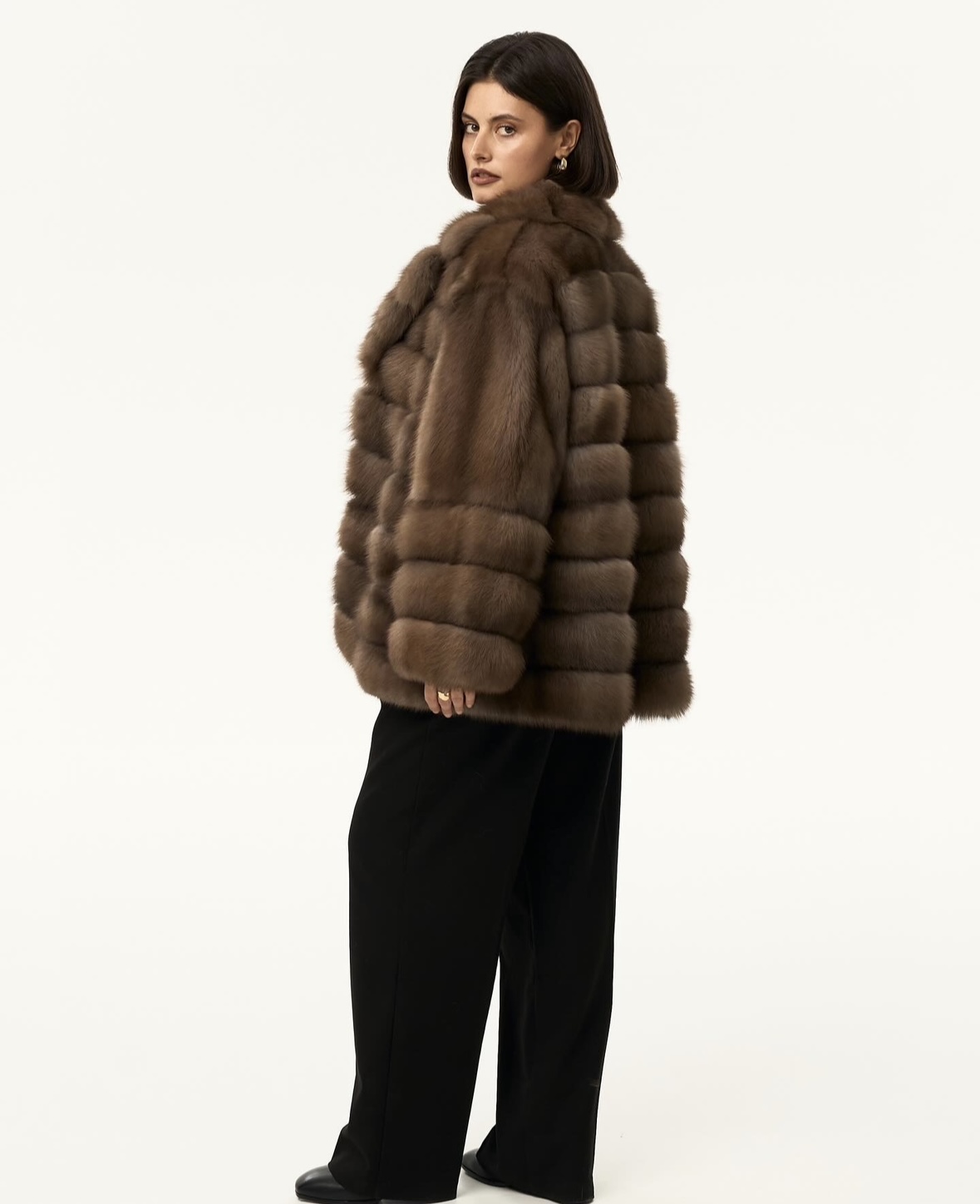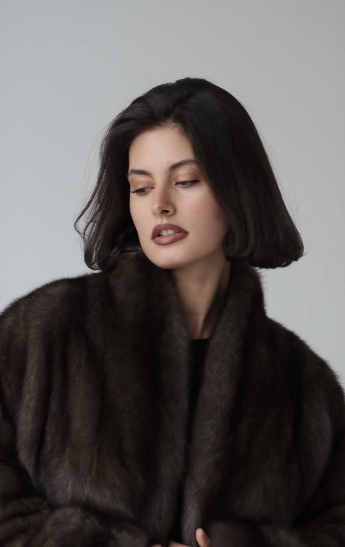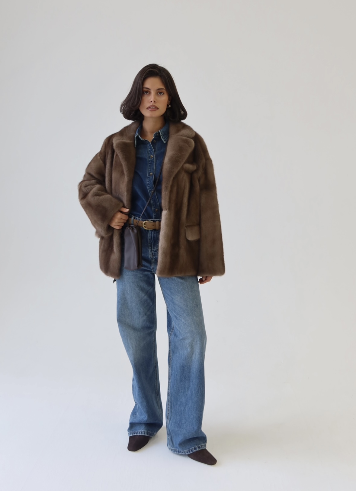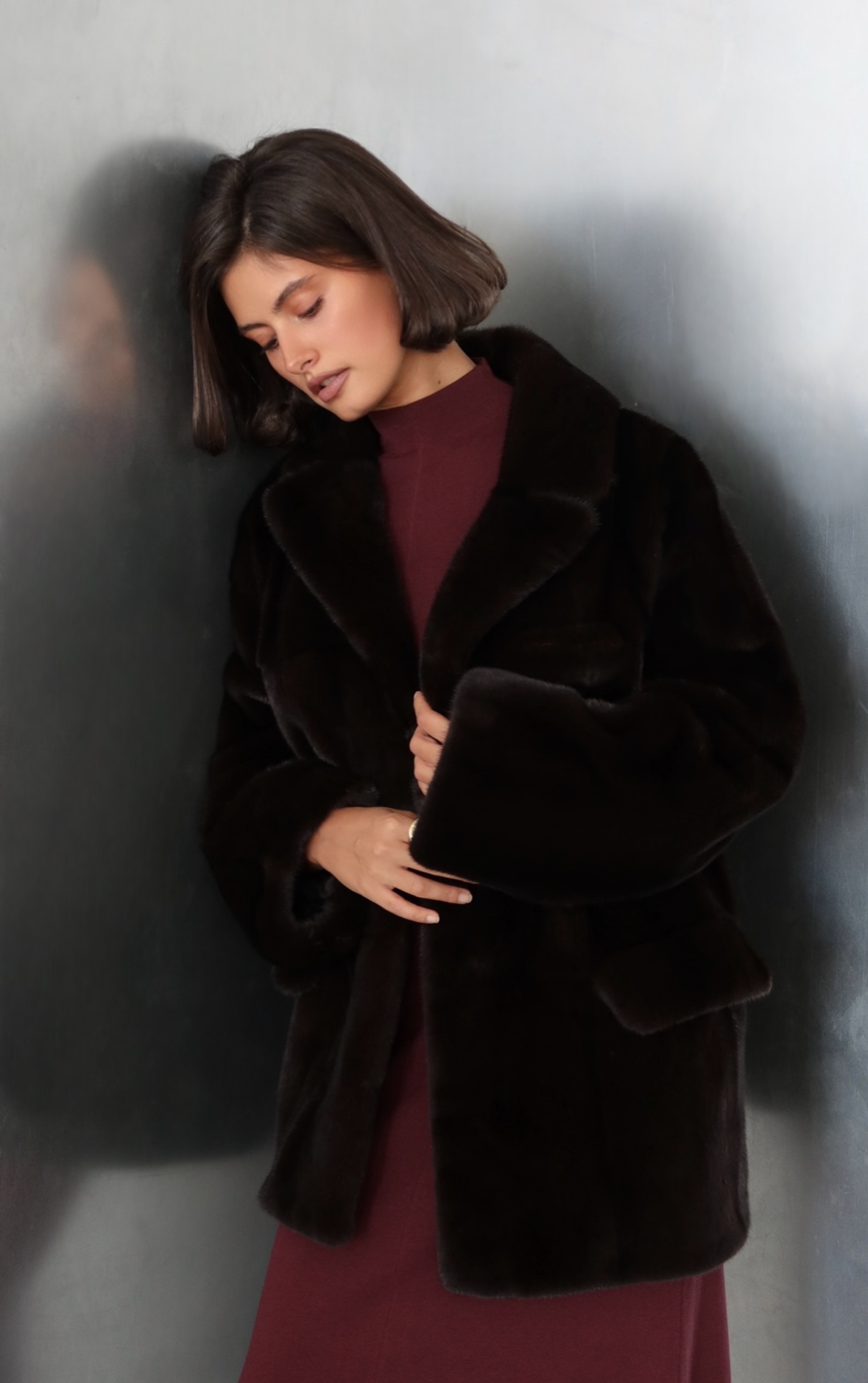 Жакет из меха аукционной отборной норки в цвете Dark Brown с английским воротником
