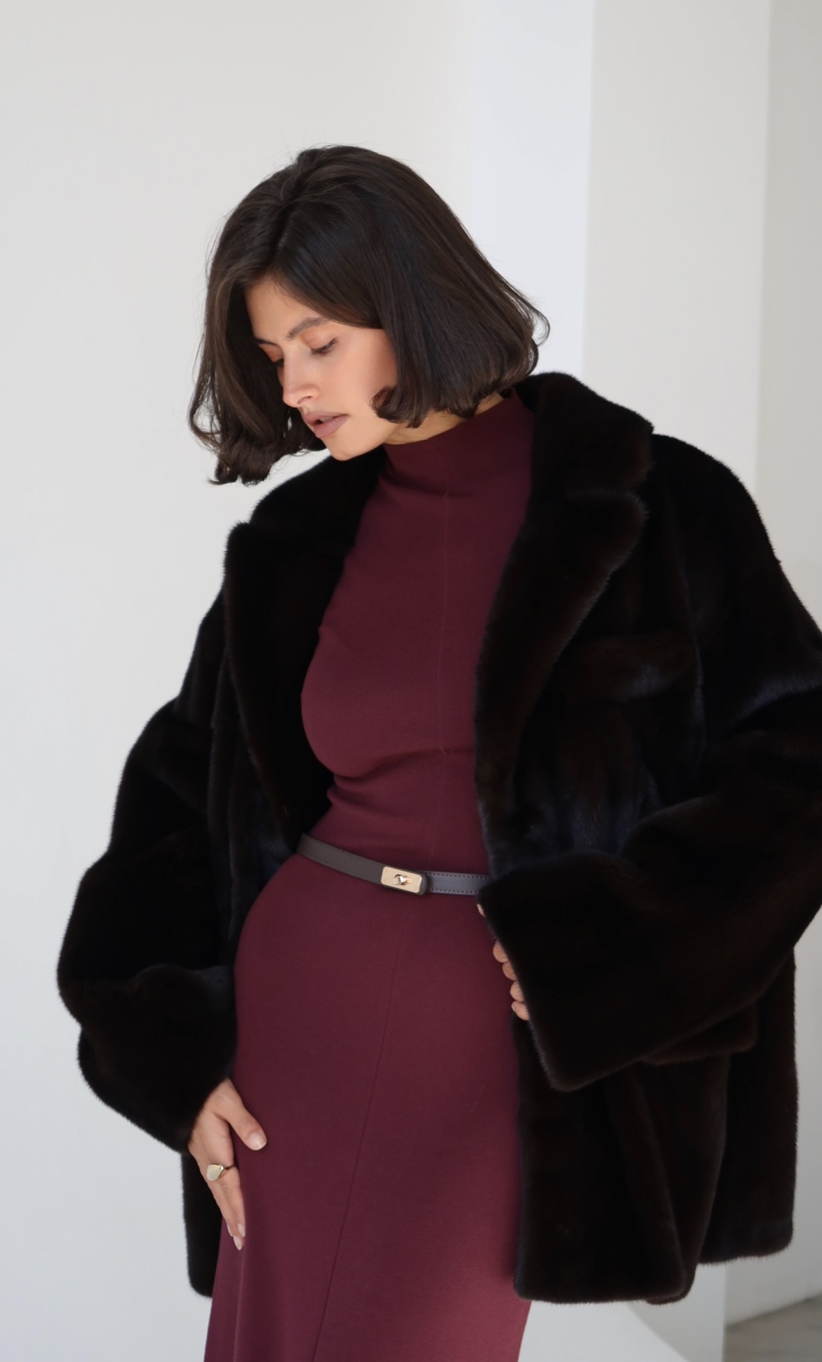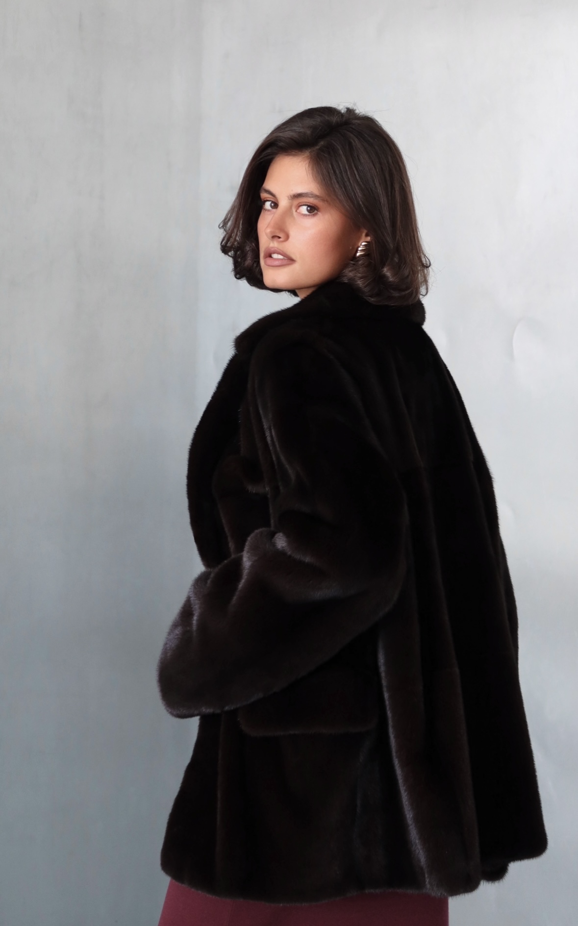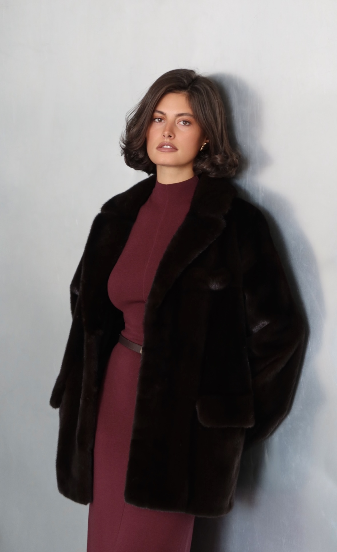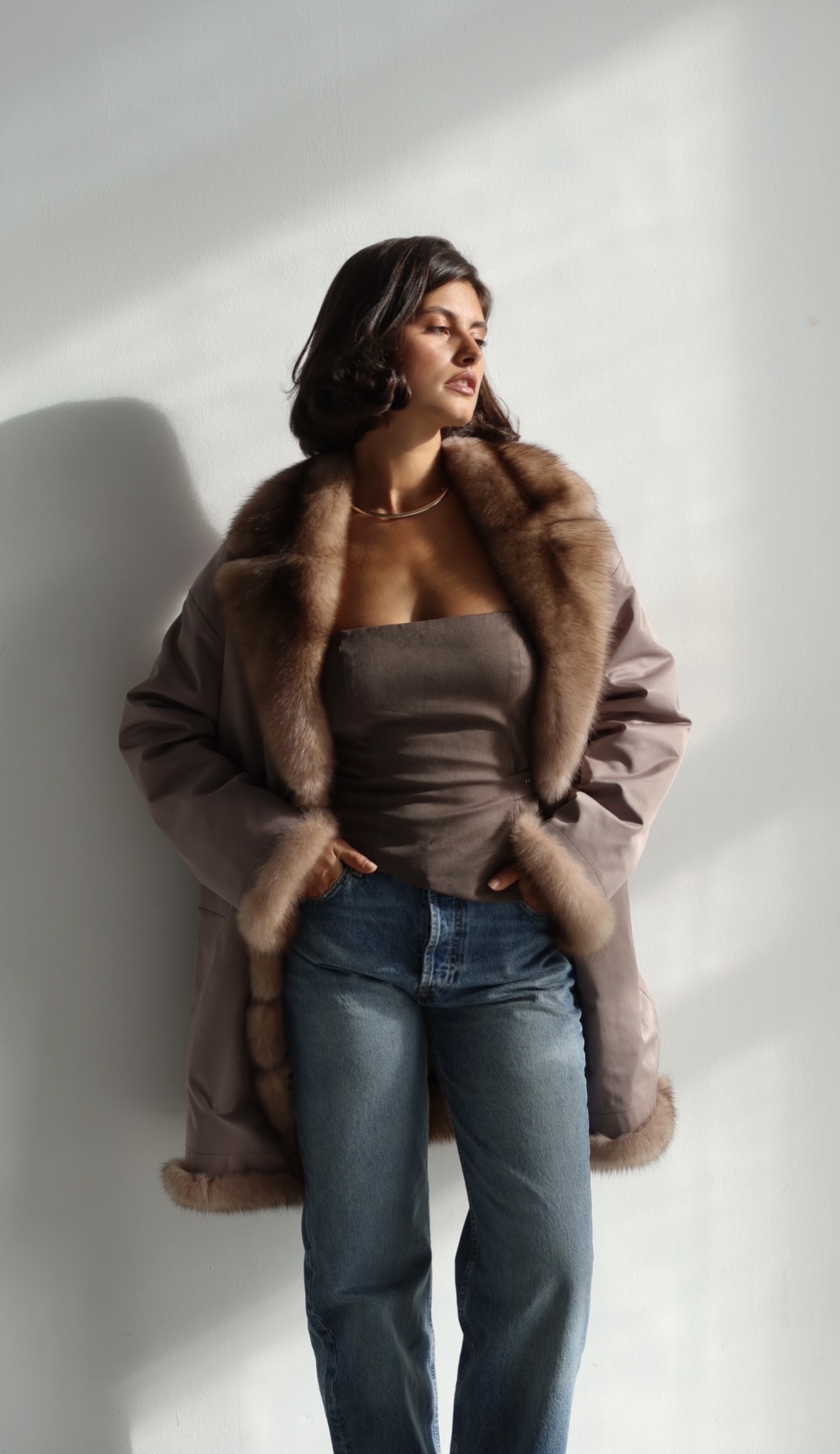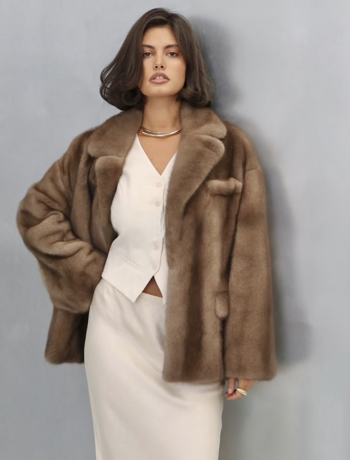 Жакет из меха аукционной отборной норки в цвете Dark Brown с английским воротником